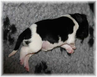 24/3-07 I dag er valpene 1 uke, vi har tatt bilder av dem og de har blitt veiet. Vi kan nå begynne og se en liten stripe i øynene deres, det betyr at det bare er snakk om dager før de åpner dem. Det normale er 10 - 14 dager. Bildene finner du under linken i vektskjemaet. Today the puppies are 1 week, we have taken pictures of them and have checked their weight. Now we can see a little stripe in their eyes, that means that it's only some days until they will be open. The normal is 10 - 14 days. The pictures you will find below each link in the weighttable. |