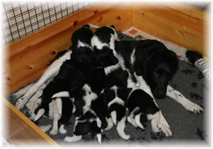 29/3-07 Alfi har begynt å mate valpene sittende. Alfi has started to feed the puppies in sitting position. |