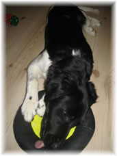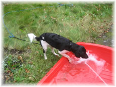 5/7-07 Her er månedens bilder av Baylee. Som dere ser av bildene er hun en typisk stabij som både apporterer og graver. Hun har hatt besøk av Olympic og Mona som har Kennel Åhlskogen, Mona skal hjelpe Kimberly når de skal i gang med utstilling. Here is this month pictures of Baylee. As you can see she is a typical stabij who both fetches and digs. She was visited by Olympic and Mona from Kennel Åhlskogen, Mona will help Kimberly when they are going to start with dog shows. |