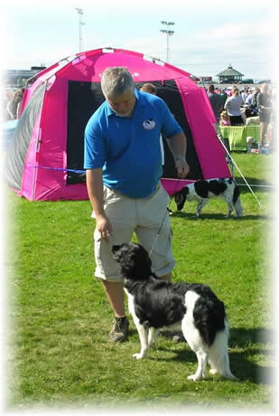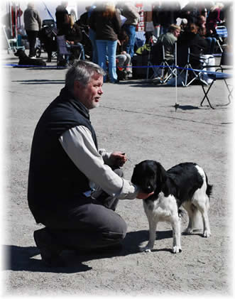 NKKs internasjonale utstilling i Kristiansand, 7.5.11 Dommer/judge: Per Iversen, Norway Champion klasse/Champion class Antall påmeldte/Number of registrated: 5 4 år gammel svart/hvit tispe. Meget bra kjønnspreg. Velformet hode med bra uttrykk. Korrekt hals. Meget god kropp. Ønsker strammere overlinje. Bra ben. Noe flate poter. God pels. Kunne hatt litt mer parallelle bevegelser. Bra fra siden. Excellent, no. 1 champion class |
