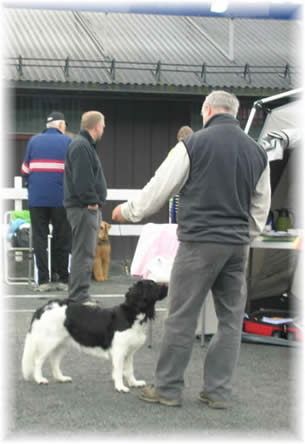 Nes Hundeklubb, Nes på Romerike, 22.6.08 Dommer: Joyce O'Connor, Ireland Juniorklasse/Junior class Antall påmeldte/number of registrated: 3 Just a nice type. Good scull, moderat length of neck, nice length of body. Well muscled hindquarter. Unfortunately she will not be handled, very sky, but not aggresive. For this reason she can not get award. KIP (Can't be awarded ) |
