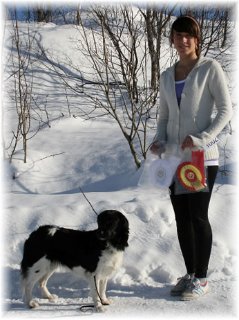 beveger seg med godt steg, litt trang bak, bra benstamme, pels. Velvist. 1 CHK, 1 CHKK, CK, 1 BTK, CACIB, BIR (1. prize, no. 1 in champion class, no. 1 Best female class, CAC res, CACIB, BOB)
