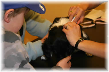 Valpen griper forsiktig, men slipper ved første rykk. |