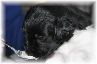 Valpen griper og holder noe imot. Slipper ganske lett. |