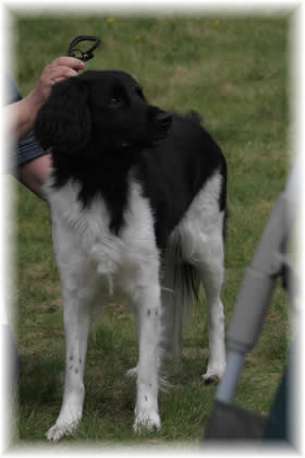 Moss og Omegn HK, 30.7.05 Dommer: Maurice Baker, England Valp 4 - 6 mndr Antall påmeldte: 2 tisper Very good body. Ex. boone. Good front and shoulder. Typ. head. Nice eye and exp. Moves nicely. Shows a lot of promise. Nr. 1, BIR, BIG 1 |