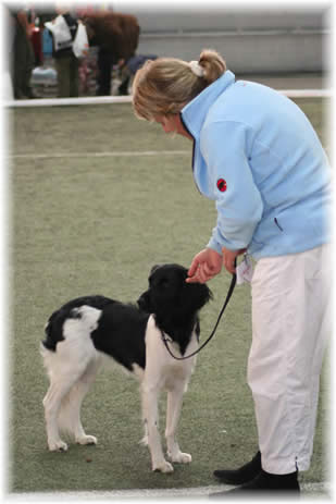 Drammen BHK, 6.8.05 Dommer: Kari Cocozza, Norge Valp 4 - 6 mndr Antall påmeldte: 1 tispe 4 mndr gml. tispe. Meget god type. Godt hode med vakkert uttrykk. Velvinklet fram og bak. Godt forbryst. Velkroppet for alderen. Beveger seg meget godt for alderen. Godt temperament. BIR, BIG 1, BIS 5 |
